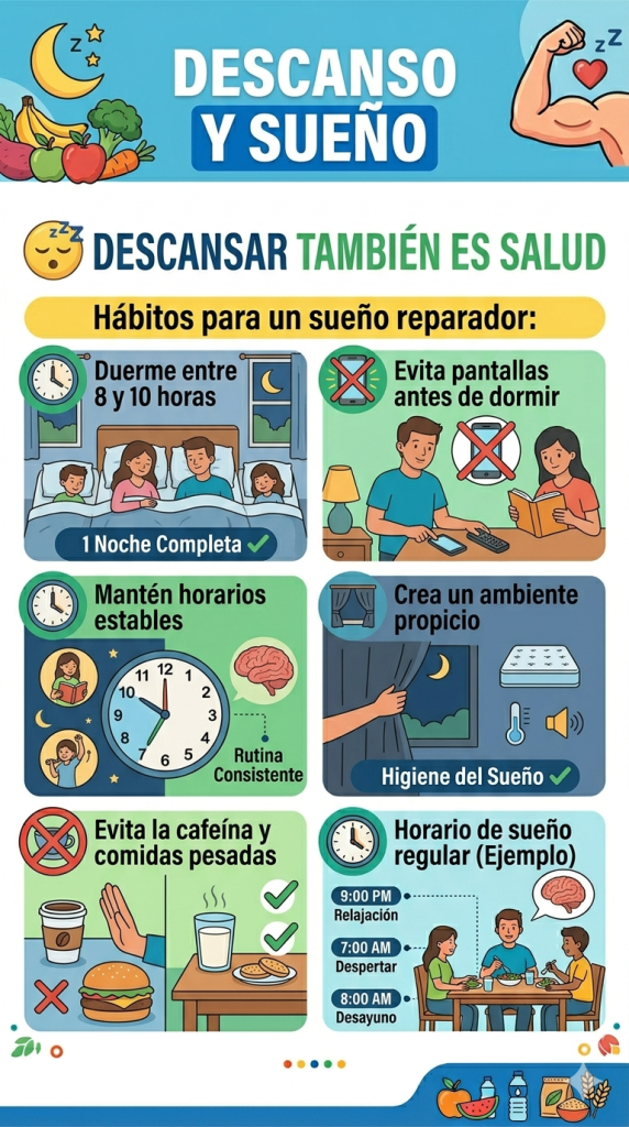 Entendemos la salud de manera integral, donde la actividad física cumple un rol fundamental, pero también se complementa con otros aspectos esenciales como el descanso y el sueño adecuado, la higiene personal, la alimentación saludable, el cuidado de la salud mental y la promoción de una sana convivencia, entre otros.