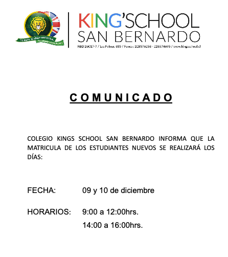 “King´s School”, tiene como visión ser una comunidad educacional innovadora, que busca la excelencia académica dando especial cuidado al aprendizaje del inglés como segunda lengua a través de la implementación de los planes y programas propios de inglés, como también el cultivo de las artes musicales y deporte a través de la transversalidad del currículum y los talleres extracurriculares. Formadora de niños, niñas y adolescentes desde una perspectiva cristiana, llamados a mostrar el amor a Dios a todos, sin exclusiones de ningún tipo, poniendo especial énfasis en atender las necesidades y diferencias que cada ser humano muestra en su relación en grupo.